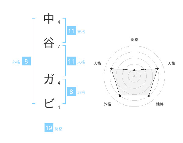 中谷 ガビさんを姓名の画数から五運を鑑定