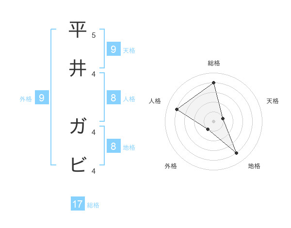 平井 ガビさんの地格は8画の4点!
