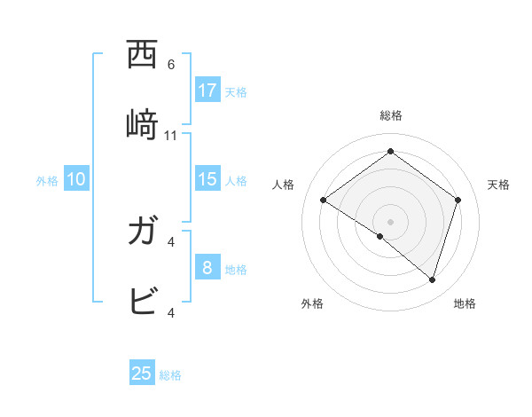西﨑 ガビさんを姓名の画数から五運を鑑定