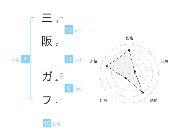 三阪 ガフさんの総格は15画の4点!