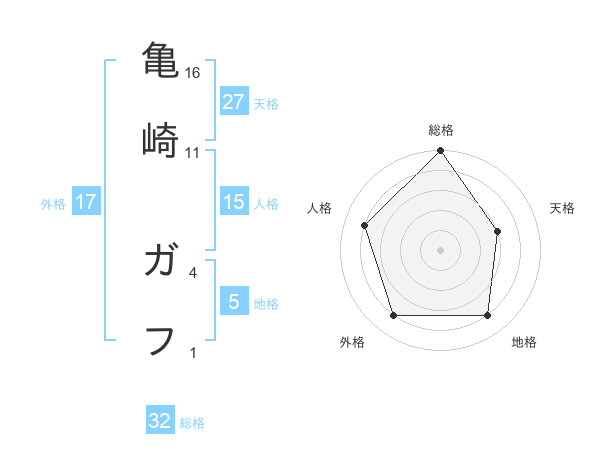 亀崎 ガフさんを姓名の画数から五運を鑑定