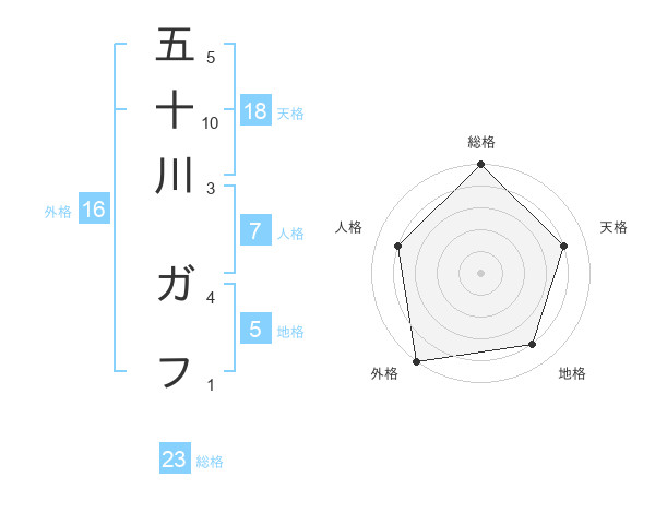五十川 ガフさんを姓名の画数から五運を鑑定