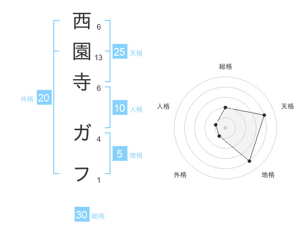 西園寺 ガフさんを姓名の画数から五運を鑑定