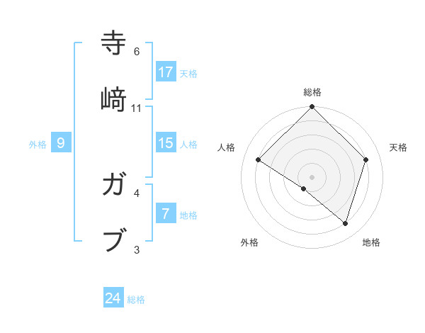 寺﨑 ガブさんを姓名の画数から五運を鑑定
