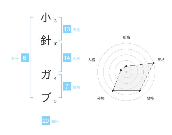 小針 ガブさんの総格は20画の1点!