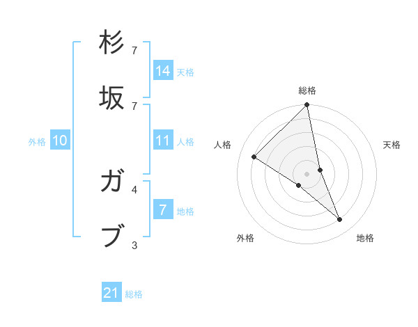 杉坂 ガブさんを姓名の画数から五運を鑑定