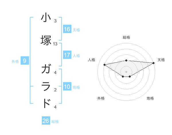 小塚 ガラドさんを姓名の画数から五運を鑑定