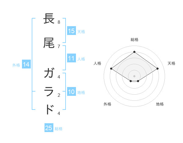 長尾 ガラドさんの総格は25画の4点