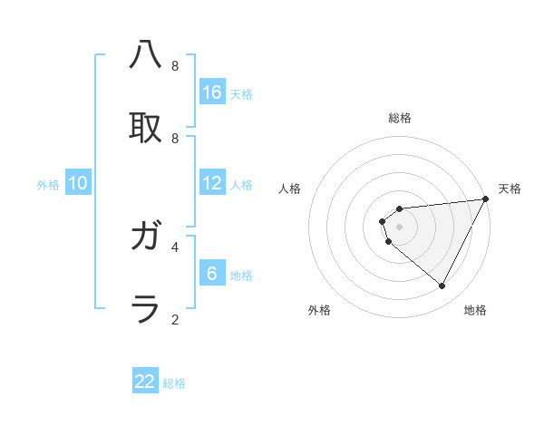 八取 ガラさんの総格は22画の1点!
