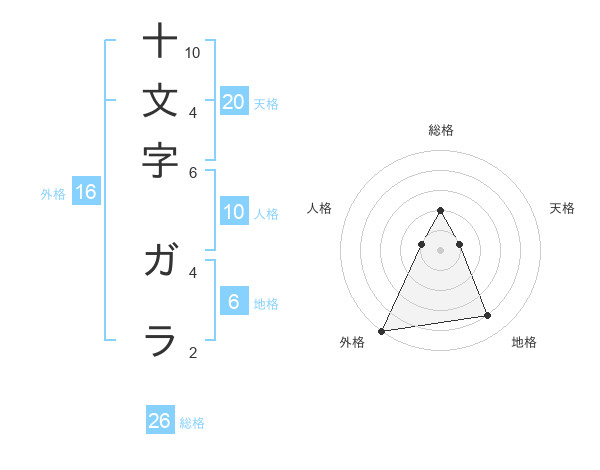 十文字 ガラさんの総格は26画の2点!