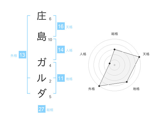 庄島 ガルダさんの天格は16画の5点!