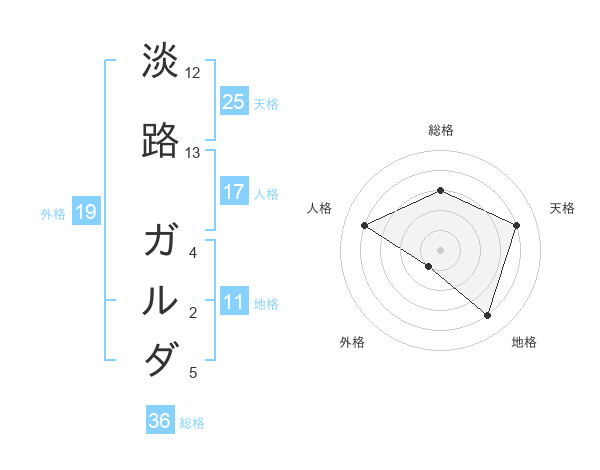 淡路 ガルダさんの総格は36画の3点!