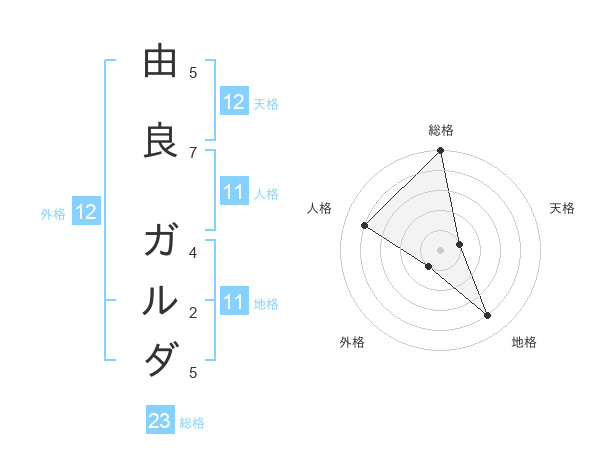 由良 ガルダさんを姓名の画数から五運を鑑定