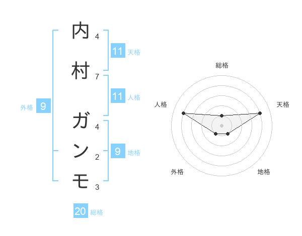 内村 ガンモさんを姓名の画数から五運を鑑定