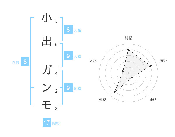 小出 ガンモさんを姓名の画数から五運を鑑定