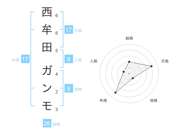 西牟田 ガンモさんの天格は17画の4点!