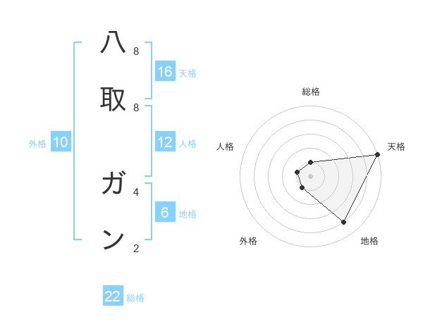 八取 ガンさんの総格は22画の1点!