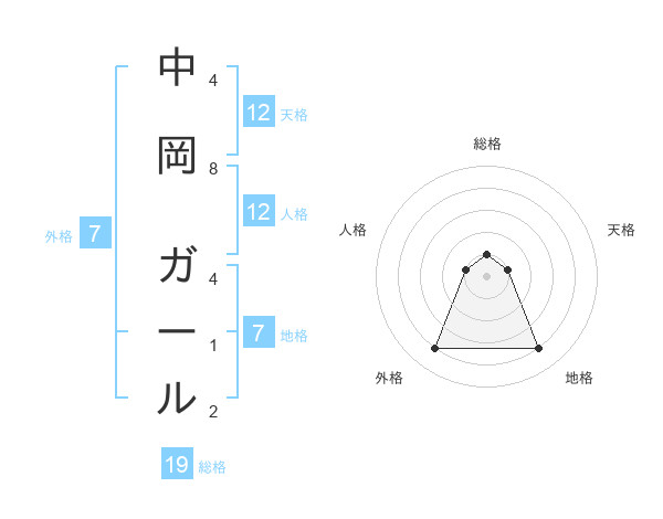 中岡 ガールさんを姓名の画数から五運を鑑定