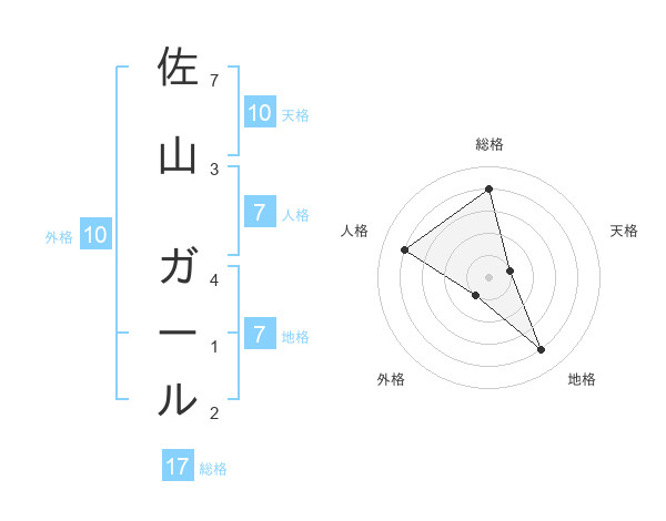 佐山 ガールさんを姓名の画数から五運を鑑定