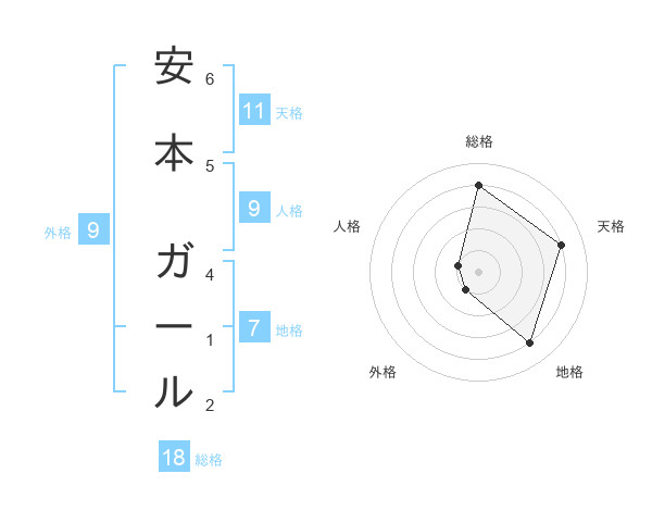 安本 ガールさんの総格は18画の4点!