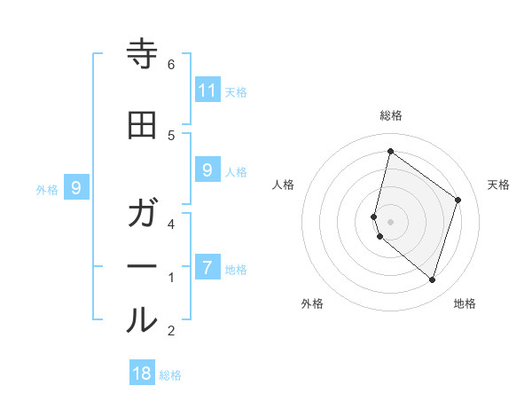 寺田 ガールさんを姓名の画数から五運を鑑定