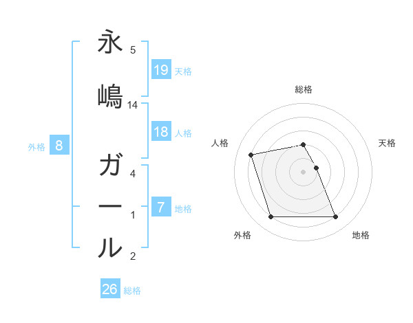 永嶋 ガールさんの総格は26画の2点!