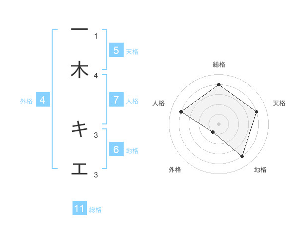 一木 キエさんの天格は5画の4点!