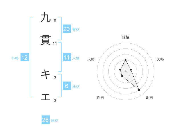九貫 キエさんの総格は26画の2点!