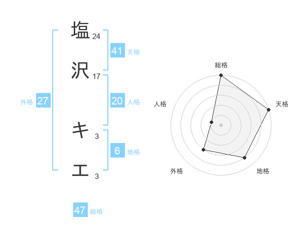 塩沢 キエさんの天格は41画の5点!
