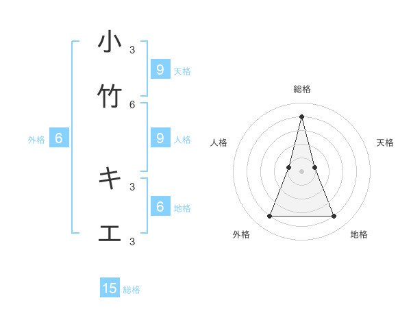 小竹 キエさんの総格は15画の4点!