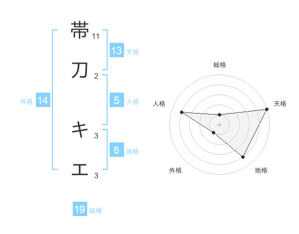 帯刀 キエさんの天格は13画の5点!