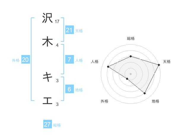 沢木 キエさんの天格は21画の5点!