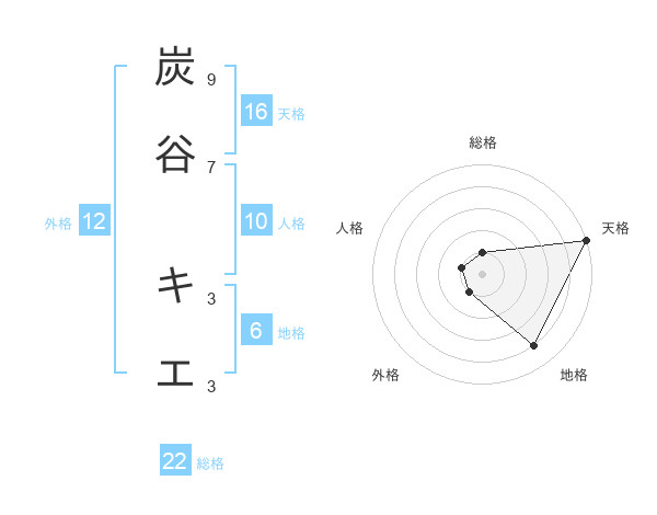 炭谷 キエさんの天格は16画の5点!