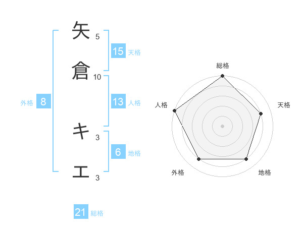 矢倉 キエさんの総格は21画の5点!