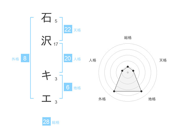 石沢 キエさんの天格は22画の1点!