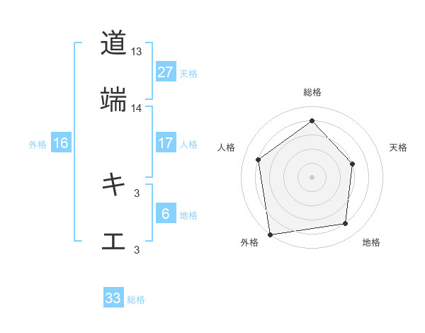道端 キエさんの天格は27画の3点!