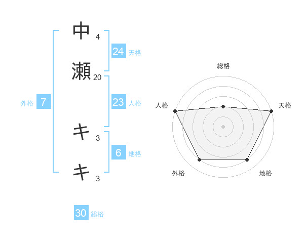 中瀬 キキさんの総格は30画の2点!