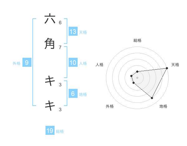 六角 キキさんの天格は13画の5点!