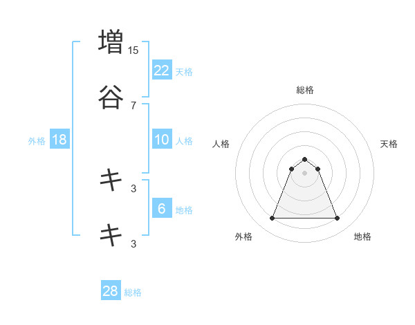 増谷 キキさんの天格は22画の1点!