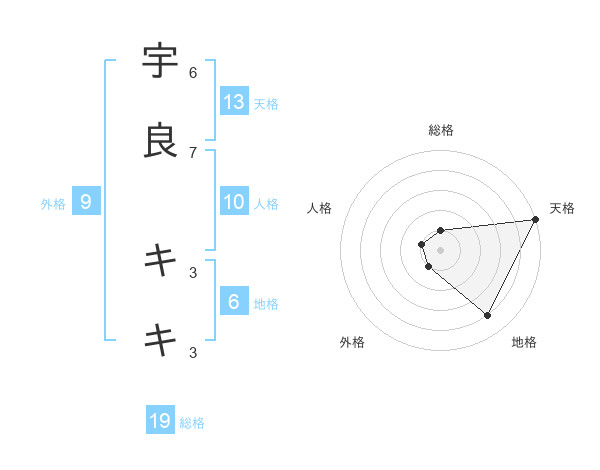宇良 キキさんの天格は13画の5点!