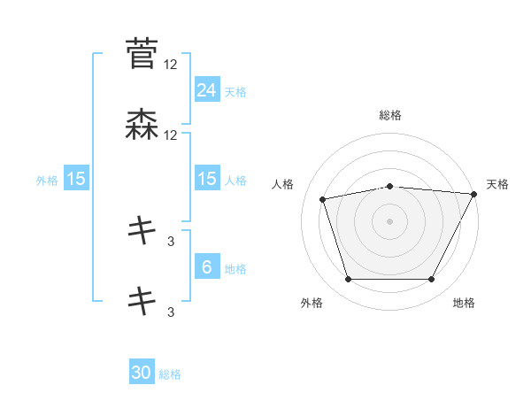 菅森 キキさんの天格は24画の5点!