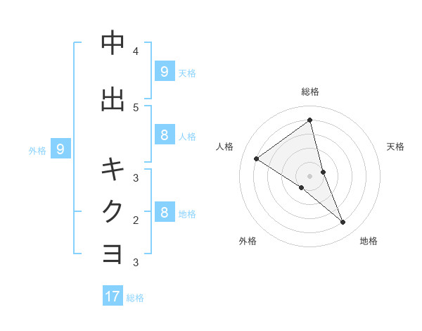 中出 キクヨさんの総格は17画の4点!