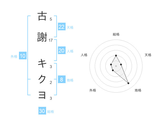 古謝 キクヨさんを姓名の画数から五運を鑑定