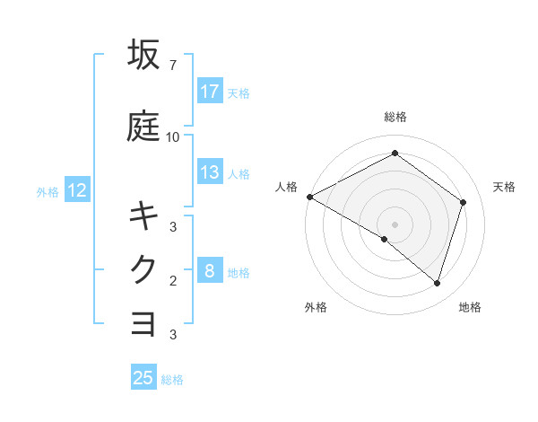 坂庭 キクヨさんの天格は17画の4点!