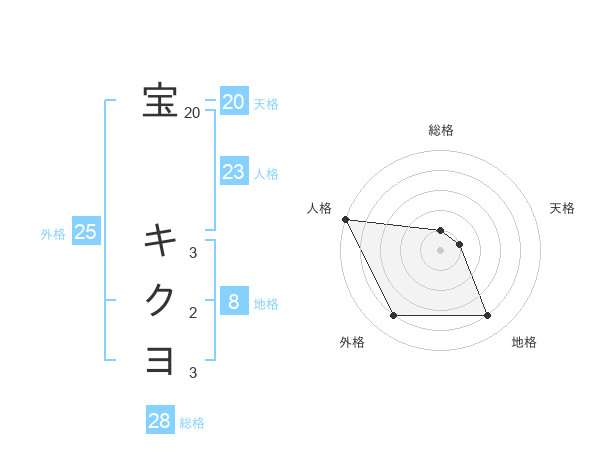 宝 キクヨさんを姓名の画数から五運を鑑定