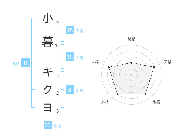 小暮 キクヨさんの天格は18画の4点!