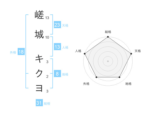 嵯城 キクヨさんの総格は31画の5点!