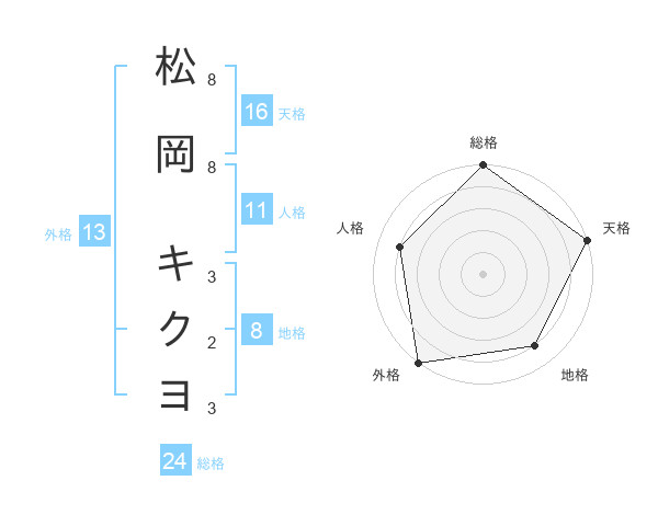 松岡 キクヨさんの天格は16画の5点!