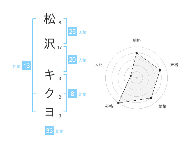 松沢 キクヨさんを姓名の画数から五運を鑑定