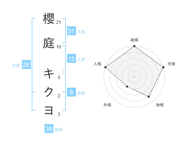 櫻庭 キクヨさんの総格は39画の5点!
